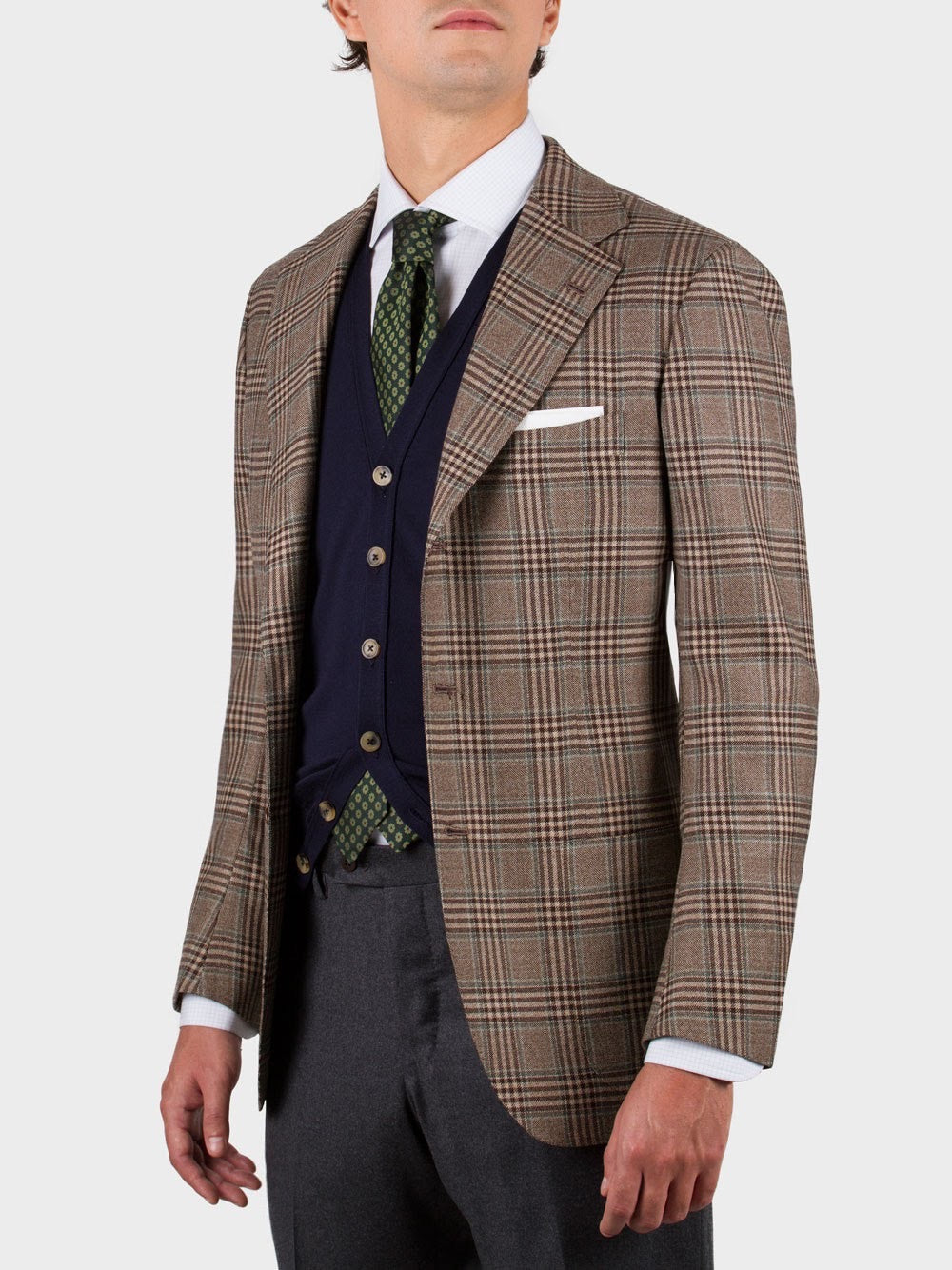 100% Натуральная шерсть - Однобортный, с 3 пуговицами, отглаженными до 2-миллиметровых лацканов на плечах - 2 накладных кармана плюс маленький карман-лодочка - Внутренняя подкладка - Двойной боковой вырез сзади - Низ 07 - Ручная работа :