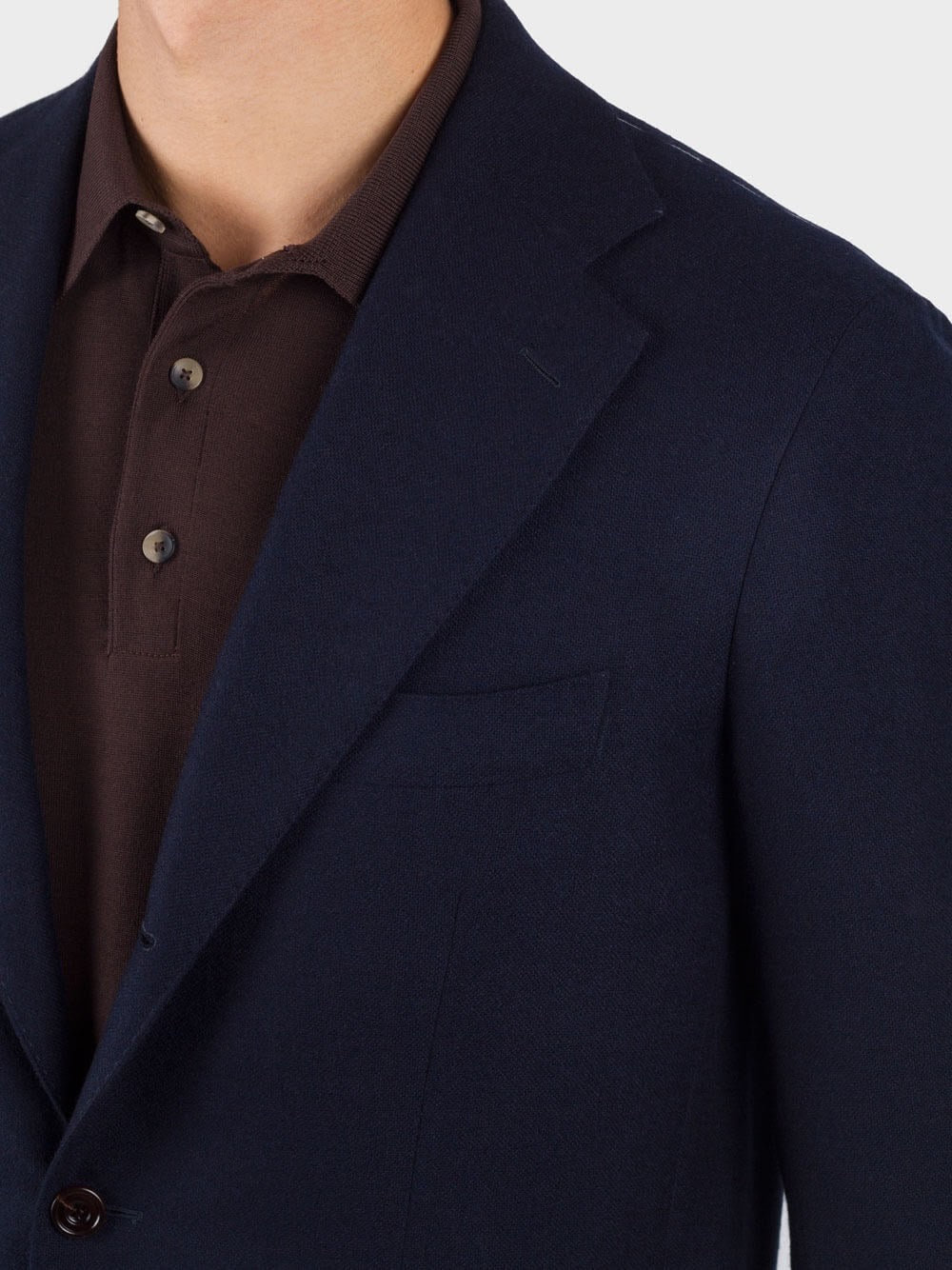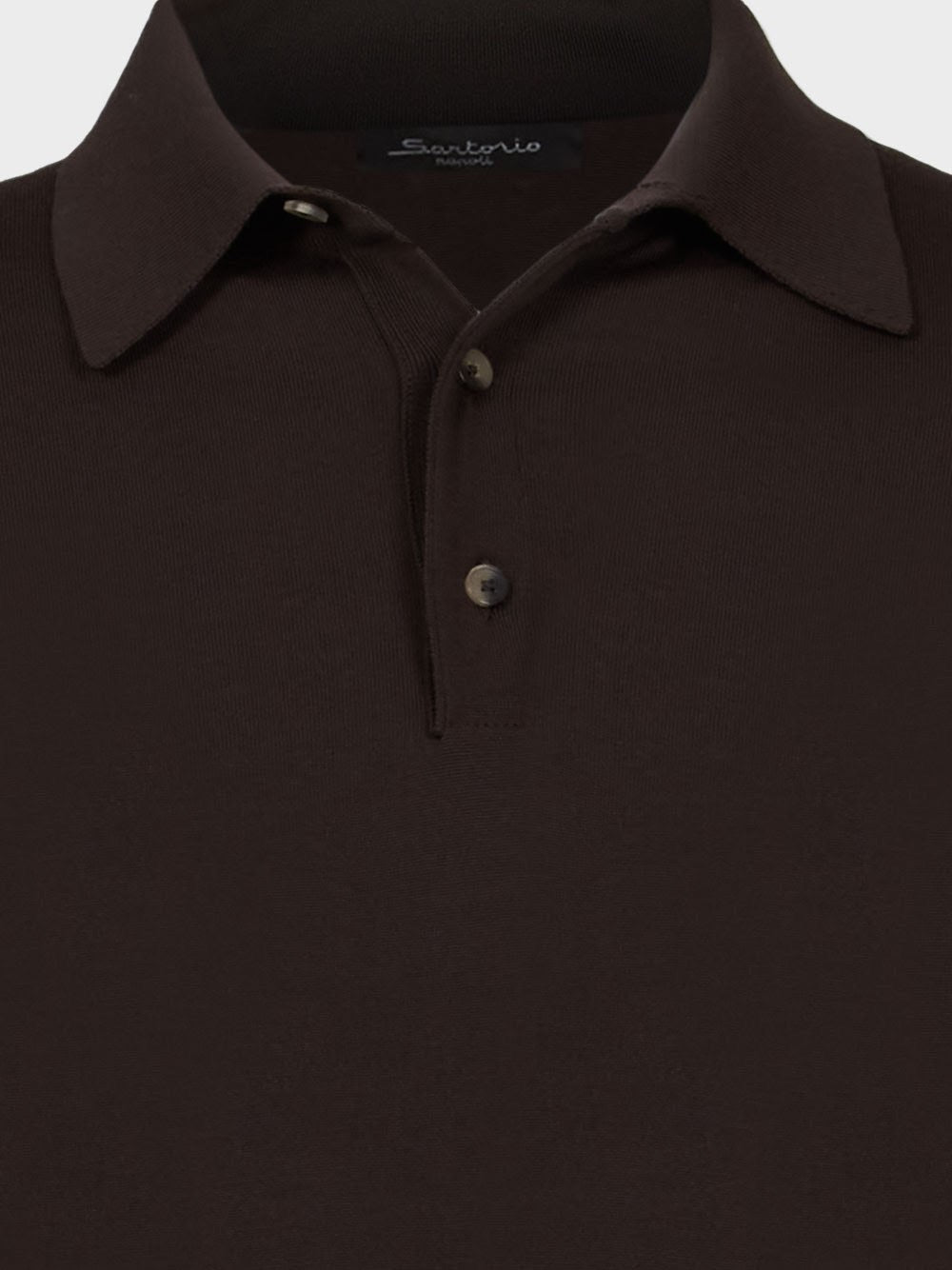 Воротник, манжеты и низ из 100% шерсти в рубчик, застежка на три пуговицы коричневого цвета